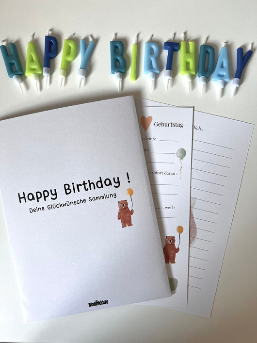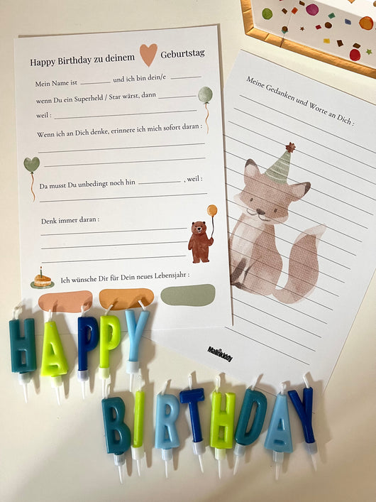 Geburtstagskarten, die von den Gästen für dein Kind ausgefüllt werden.