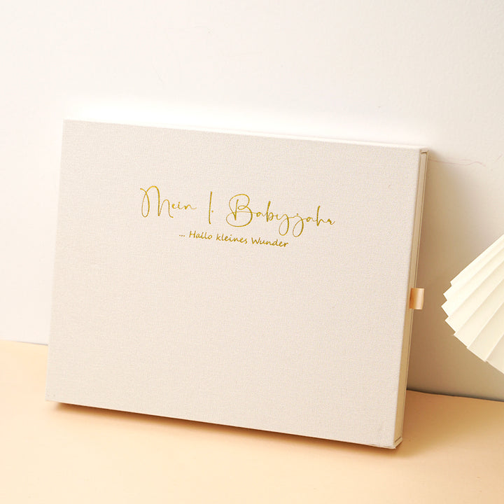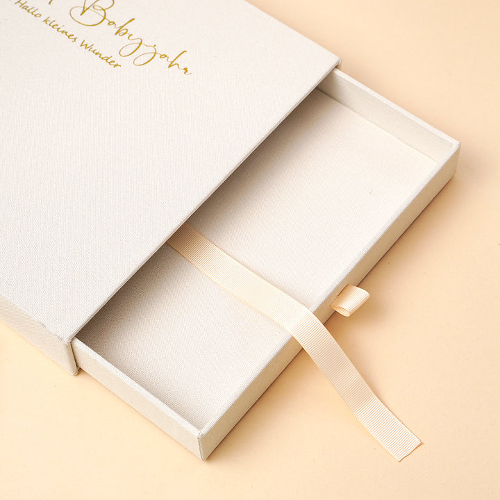 Leinen Aufbewahrungsbox für die ersten Babygegenstände, Mutterpass, Ultraschallbilder etc.