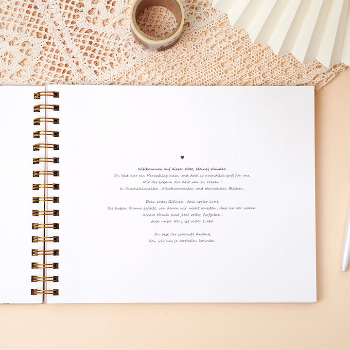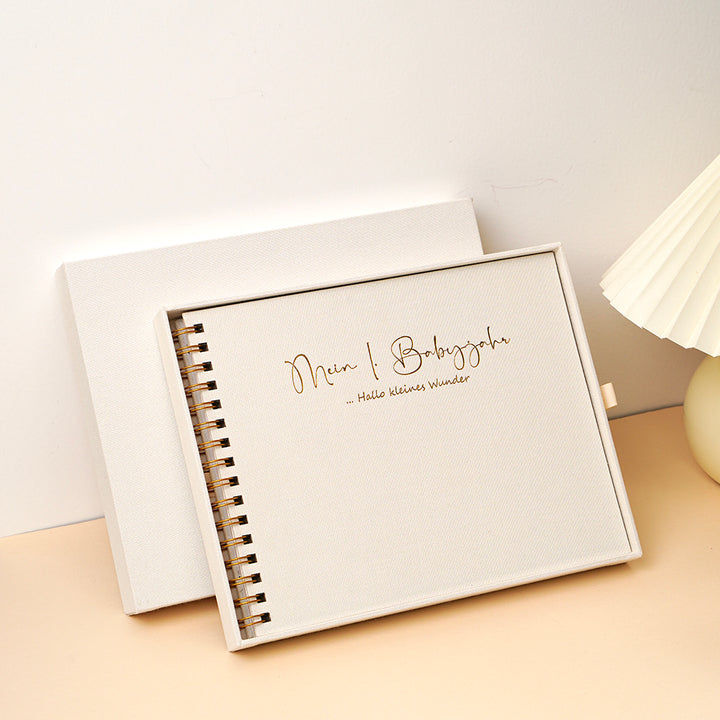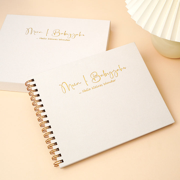 Leinencover mit Spiralbindung. Viel Platz für Fotos & Erinnerungen